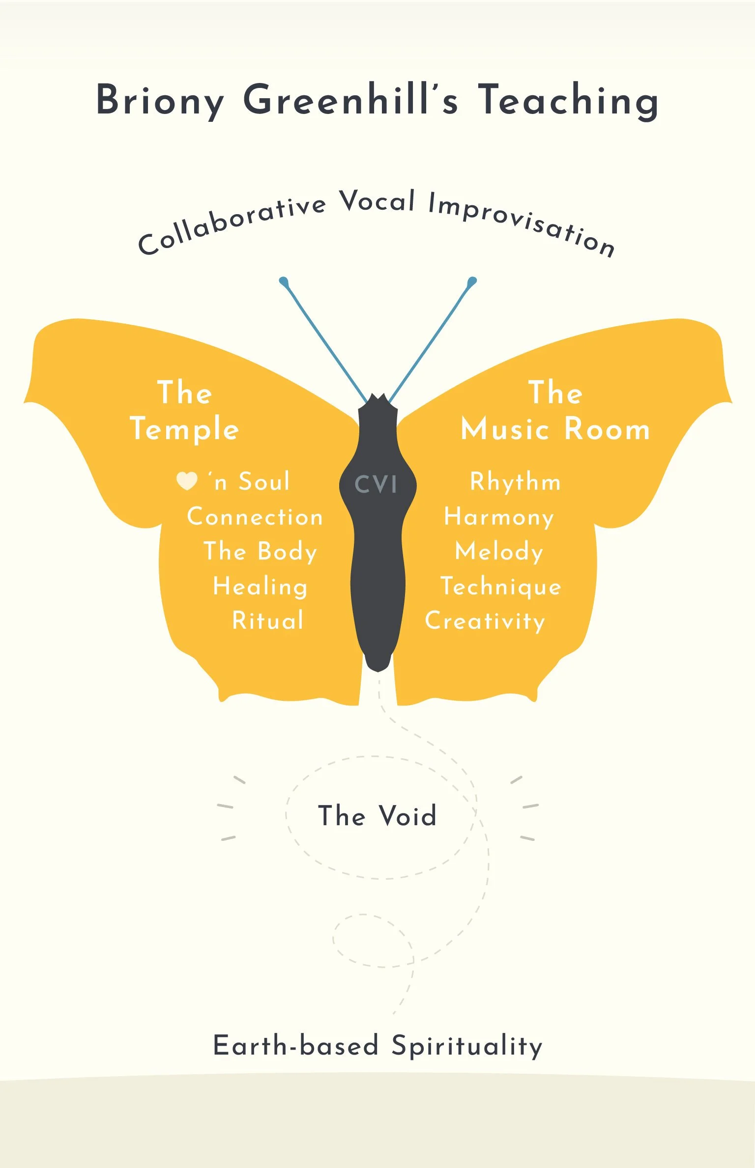 Some courses focus more on the Music Room (e.g. Wild Voice, Solid Roots); some courses are more in the Temple (e.g. Singing The Unseen); some courses balance the two (e.g. Re-Wilding The Voice.)